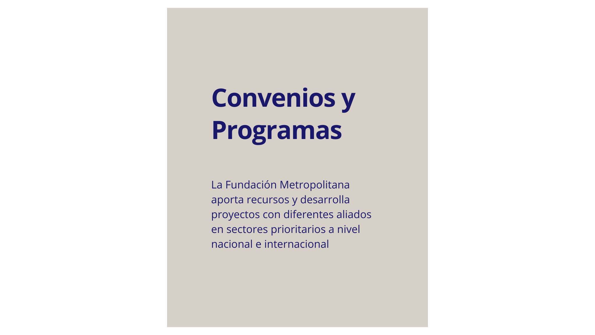 A pesar de la azarosa naturaleza de la existencia, los sueños se cumplen. Esta ha sido la premisa que, desde siempre, ha guiado cada idea emprendida por nuestra familia. La Fundación Metropolitana es la manifestación de esfuerzos colectivos, alimentados por un profundo deseo de crear conexiones, desterrar diferencias y promover el progreso. Ya son más de 15 años trabajando con orgullo en aras de fomentar el desarrollo profesional y la educación para todos durante toda la vida.